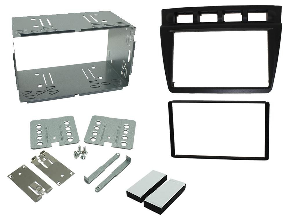 Plastový adaptér v antracitovej farbe + kovový rámček slúži na montáž neoriginálneho 2DIN autorádia.