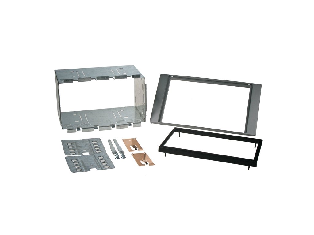 Plastový adaptér v striebornej farbe + kovový rámček slúži na montáž neoriginálneho 2DIN autorádia.