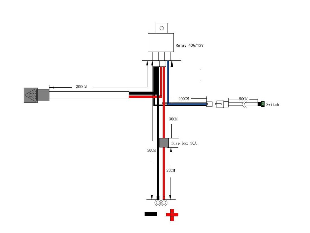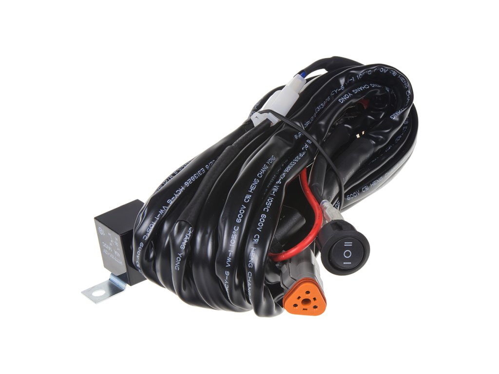 Kabeláž pre pripojenie svetla s 3-pin DT konektorom, vrátane vypínača a relé.