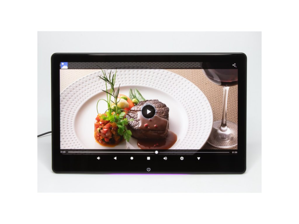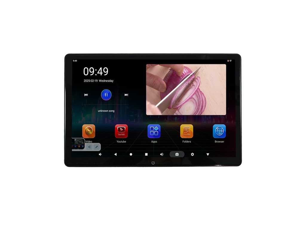 Vysoko kvalitný LCD monitor 14" OP Android 13.0, určený na montáž na opierku, s čítačkou micro SD kariet, USB portom, HDMI vstupom a výstupom so zobrazením 16:9 s možnosťou otočiť monitor horizontálne.