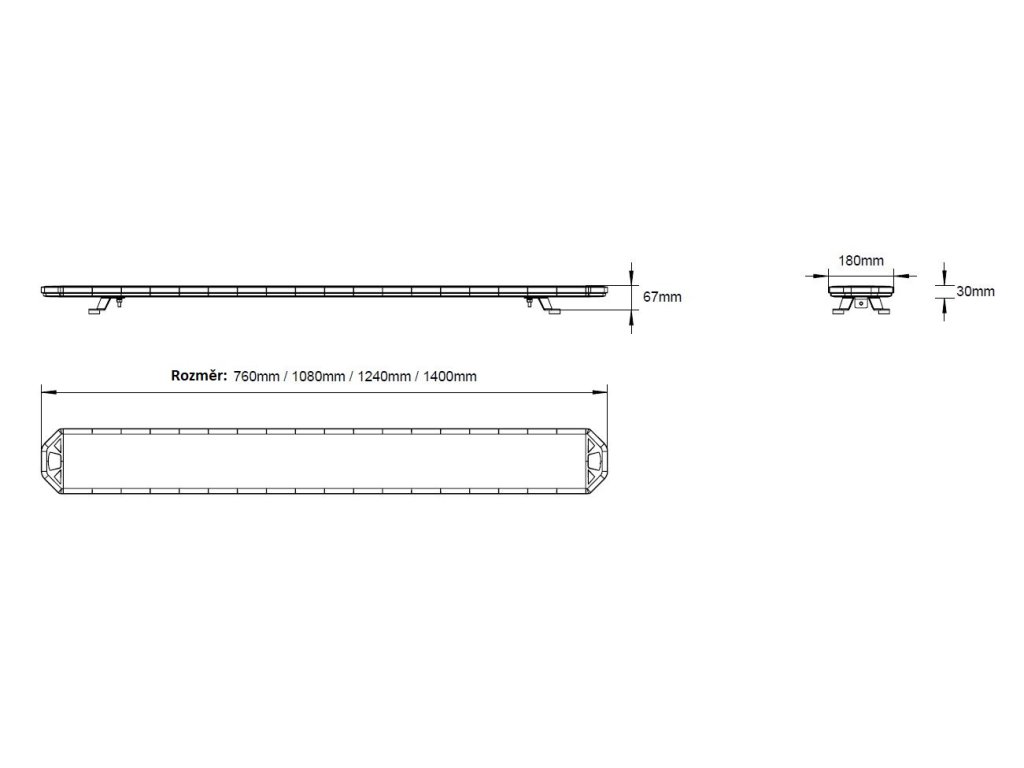 • rozmery: 1080 x 180 x 30 mm (výška vrátane držiaka 67 mm)