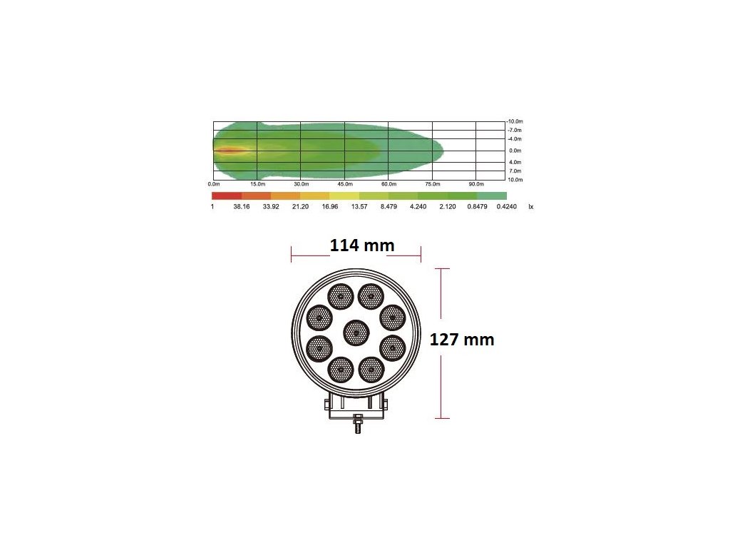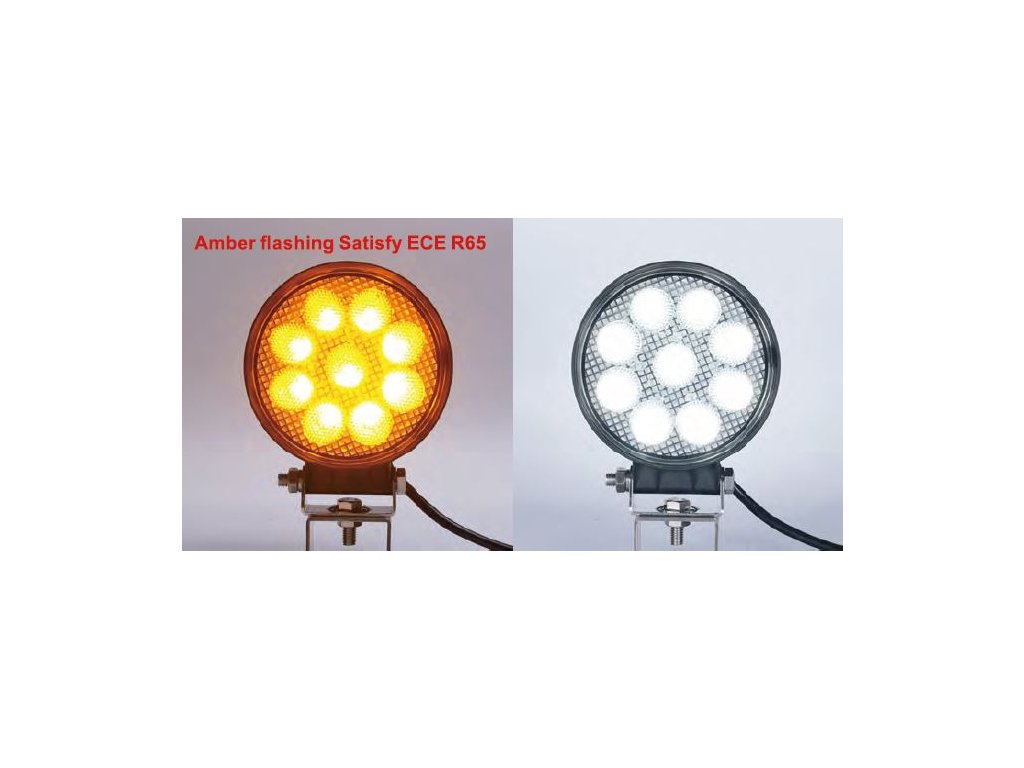 LED svetlo okrúhle, biele/oranžové, 9x3W/9x1W, ø114mm, ECE R10
